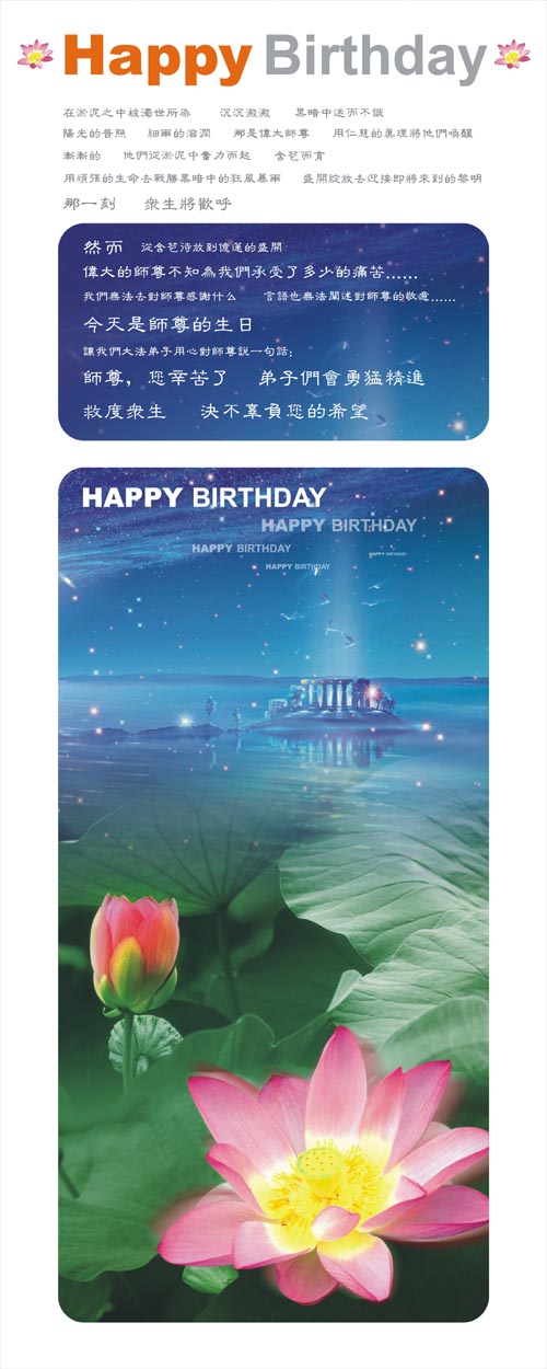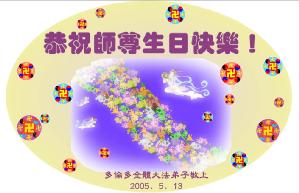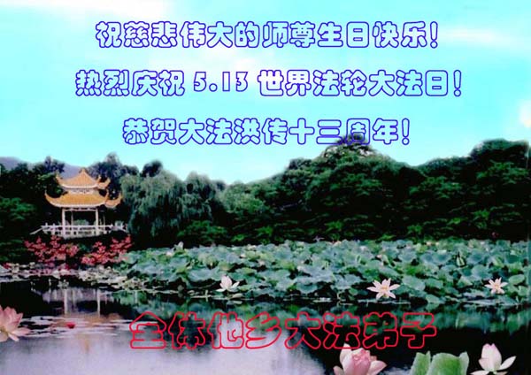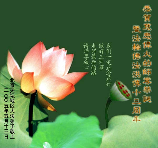 衷心恭贺慈悲伟大的师尊华诞暨法轮大法洪传世界十三周年我们一定做好三件事,堂堂正正走好最后的路,请师尊放心!