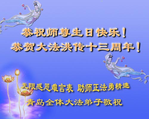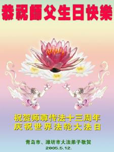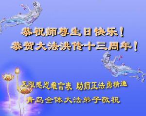 青岛市全体大法弟子共庆世界法轮大法日!并祝全世界法轮大法弟子节日快乐!