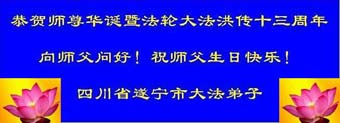 我代表黑龙江省肇东市大法弟子祝师父生日快乐、万事如意。我们一定做好正法的三件事,不辜负师父的苦心救度,不愧对“正法时期大法弟子”的称号。