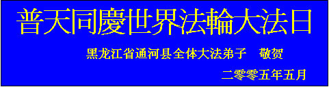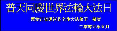 通河县全体大法弟子同全世界大法弟子同庆、同祝、同贺世界法轮大法日。