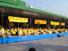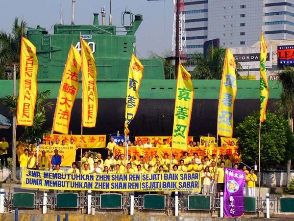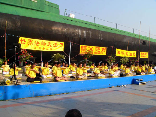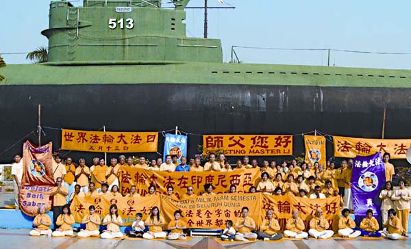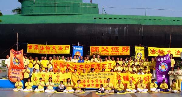 【明慧网2005年5月15日】印尼泗水大法弟子于五月十三日清晨在泗水海军潜艇纪念馆庆祝世界法轮大法日