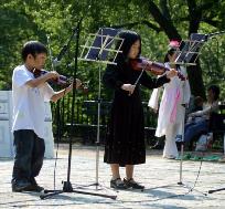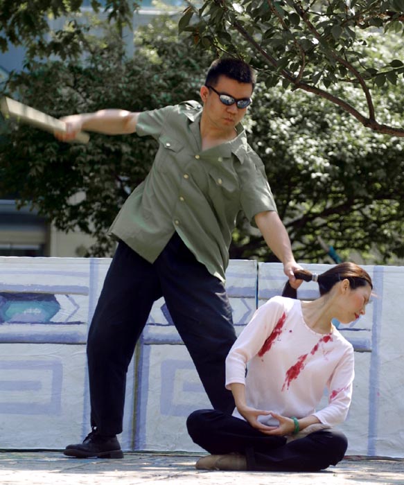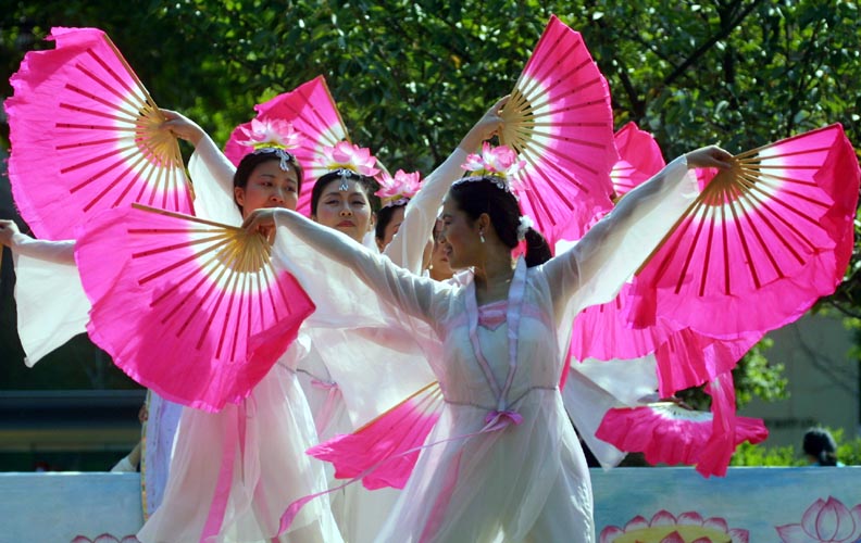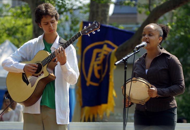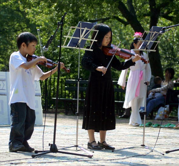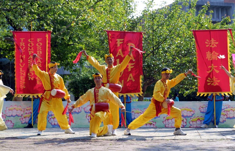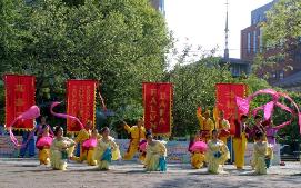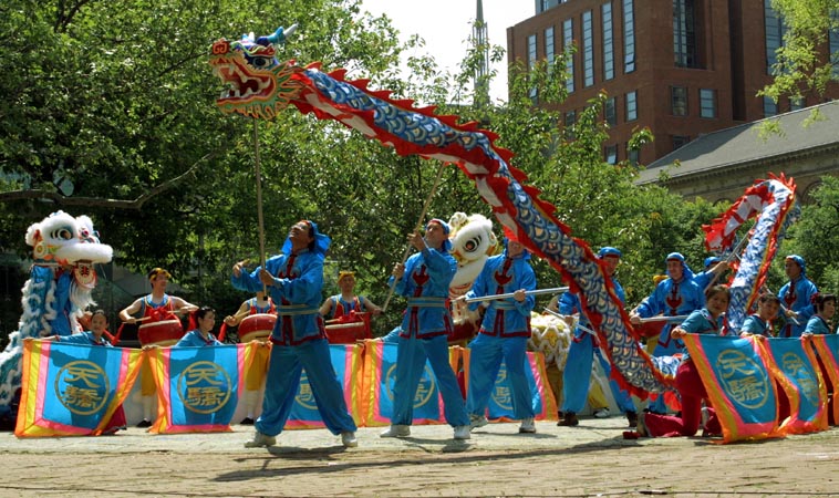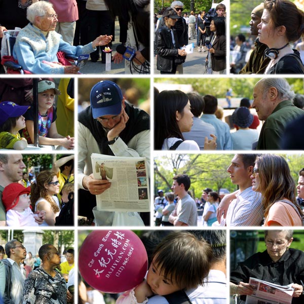 【明慧网2005年5月15日】作为世界法轮大法日庆祝活动的一部份,2005年5月14日,纽约部份法轮功学员和支持者们在华盛顿广场公园举办了多姿多彩的文化表演活动,两小时的节目吸引了大量观众。