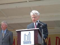 主持人樊家忠先生说:“今天是法轮大法洪传世界十三周年纪念日,也是加拿大真善忍日,在全球六十多个国家都有庆祝活动。今天我们也是在庆祝李洪志老师的生日,用我们最纯净的心感谢李老师的无私奉献。”樊家忠先生接着说:“不幸的是,这个世界上并不是所有的国家都象加拿大一样保障人民的信仰自由,众所周知,信仰自由在中国并不存在,除非你服从(中共)政府在你信仰上的指导。基于对法轮大法受到高度欢迎的嫉妒,中共当局于1999年发动了对法轮大法学员的残酷镇压。镇压六年来,透过国际特赦及其它人权组织,大量的镇压事实被公诸于世,而法轮大法学员不屈不挠的精神也被世人所认识。”