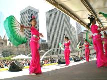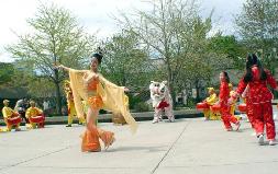 近两个小时的文艺表演精彩纷呈,观众的掌声一浪高过一浪。法轮功学员、著名歌唱家关贵敏、杨建生、白雪等先后上台献技;著名作曲家和演奏家李丽莎亲自上台参加演奏自己的作品“万古天门开”;年轻的法轮功学员们为观众表演了欢快的民族舞蹈、唐鼓及舞狮;还有三个巨型生日蛋糕与观众分享,现场教功也吸引了不少市民来学法轮功。
