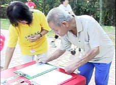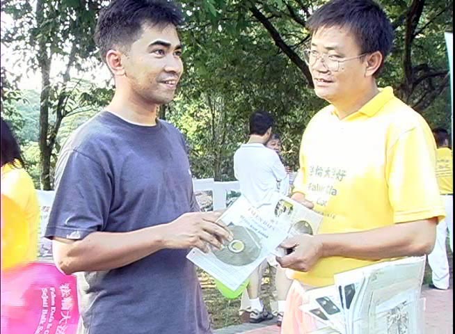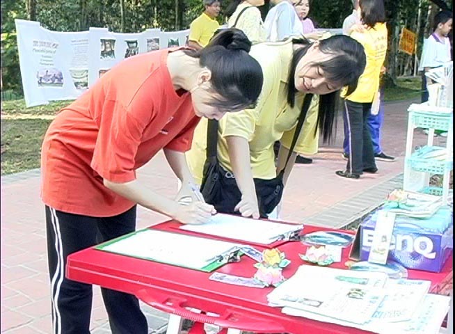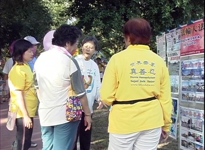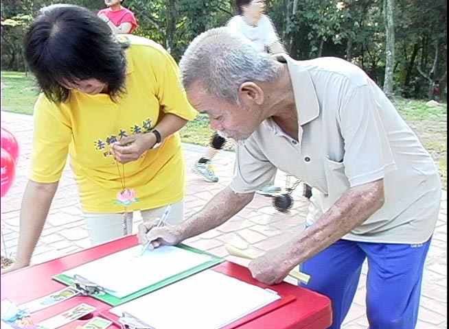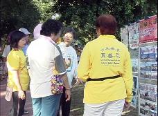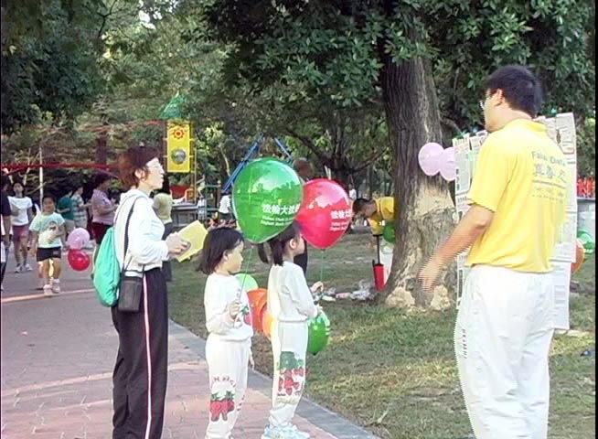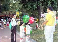 他们也在现场派发“法轮大法好”气球和传单给行人。也有行人在了解了法轮功当前正受迫害的情况后,签名支持反迫害。最后全体学员恭祝师父生日快乐。