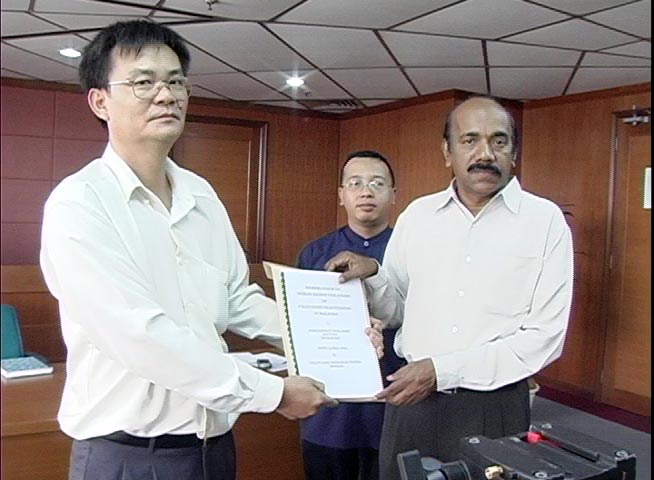 ![]() 法轮功代表呈交备忘录给马来西亚人权委员会委员拿督西华 | ![]() 马来西亚人权委员会委员拿督西华表示会关注马来西亚法轮功学员人权被剥夺的事件 |