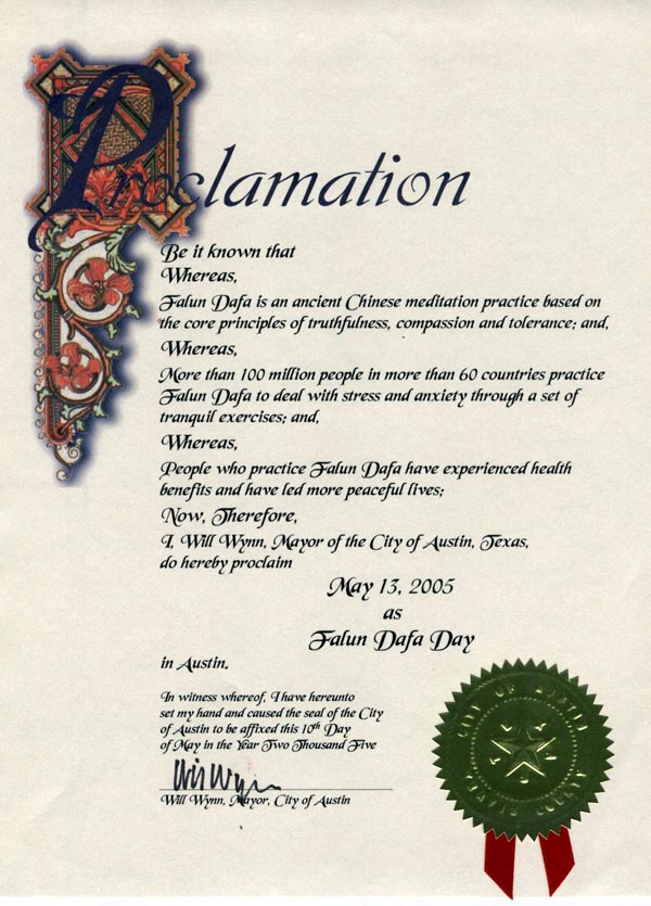 鉴此,我,威尔-维恩,德克萨斯州奥斯汀市市长,特此宣布2005年5月13日为