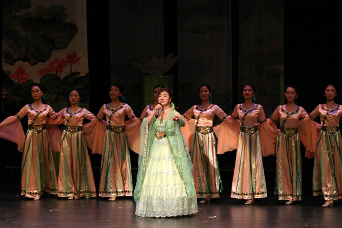 ![]() 莲花艺术团表演的舞蹈《花仙》 | ![]() 男高音歌唱家关贵敏 |