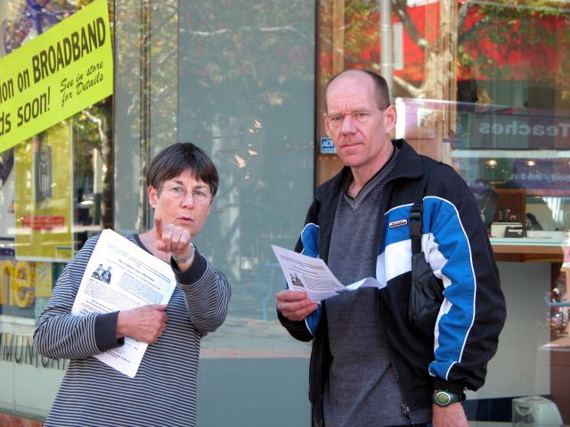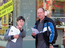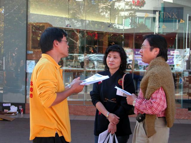 一名西人女士(非法轮功学员)向市民介绍法轮功学员在中国受迫害的情况 |