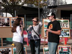 【明慧网2005年5月17日】2005年5月14日星期六,澳洲堪培拉学员在市中心以“法轮大法和平之旅”图片展的方式庆祝世界法轮大法日。两个彩色的遮阳亭,录像,给游客书写中文名字,赠送莲花,以及各种彩色图片,展板和横幅,让我们的展览显得格外引人注目。