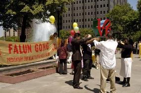 ![]() 游人学炼法轮功 |