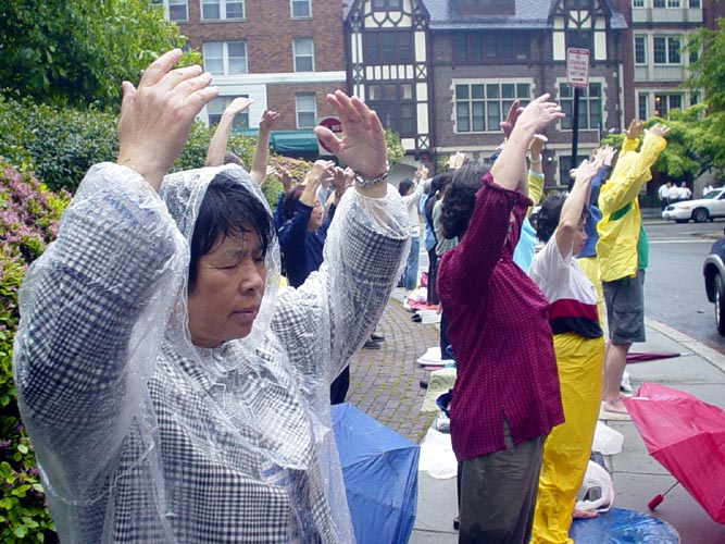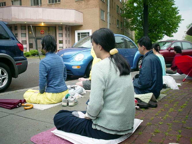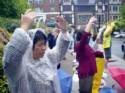 ![]() 游人学炼法轮功 |