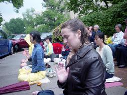 ![]() 弟子们行合十礼向伟大的师尊祝生日快乐 | ![]() 演示法轮功五套功法 |