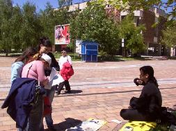 学员们受到民众热烈的欢迎,不论走到那儿人们都兴致勃勃的和学员交谈。学员派送传单,内容是有关中共迫害法轮功的详细资料、已经证实被迫害死亡的人数,以及全球超过20多个国家对迫害元凶江××及其帮凶所发起的诉讼案件。
