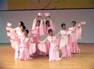 在优雅舒缓的音乐中,学员们轻盈柔美的舞姿、甜美祥和的微笑,再配以古典的长裙,宛如出水芙蓉,亭亭玉立;又似落入凡间的仙子,一尘不染。这种气氛将观众从喧嚣带入到宁静、祥和、美和纯洁之中。如此美好高雅的表演为世人开辟出一块净土。