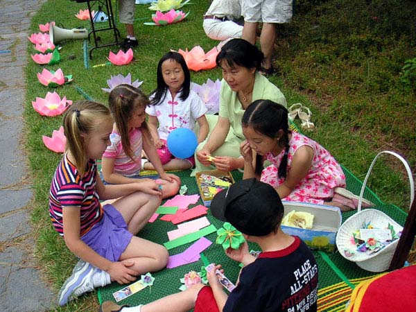![]() 教小朋友叠做纸莲花 | ![]() 西人学员演唱“为你而来” | ![]() 功法表演 |