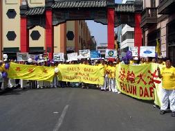 参加这次庆祝活动的大多数是新学员,从来没有步行走过这么远的路。一路上看到了接收到法轮大法传单时世人惊喜的眼神,感受到人们等待大法已久的期盼,学员们内心深受震撼,坚持走完两小时全过程。队伍到达唐人街后圆满结束了这次的庆祝游行活动。