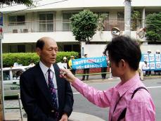 ![]() 递交致新加坡大使的一封信 | ![]() 鹤园雅章接受记者采访 |