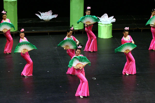 ![]() 全球营救的江帆和苏珊致开幕词 | ![]() 莲花艺术团表演的舞蹈《花仙》 | ![]() 莲花艺术团表演的舞蹈《清风雅袖》 |