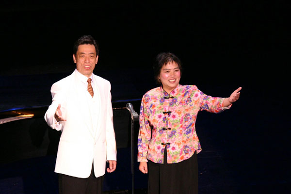 ![]() 女低音歌唱家杨建生独唱《狱中吟》、《暮春》 | ![]() 女高音歌唱家白雪独唱《思故国》、《致乡亲》 | ![]() 男高音歌唱家关贵敏和夫人 |