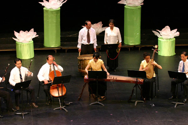 音乐会在莲花艺术团的精彩表演中拉开序幕,十几个身穿仙女装的演员在动听的音乐声中亮相,舞蹈《花仙》表现的是从天而降的莲花仙子给人间带来的美好和出淤泥而不染的境界。她们优美的舞姿倾倒了现场观众。表演结束后,全场报以热烈的掌声。