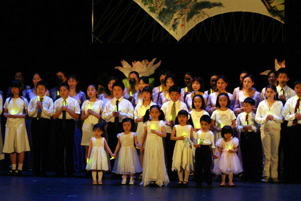 ![]() 主持人Zenon和 Grace Wei | ![]() 合唱《烛光》 |