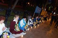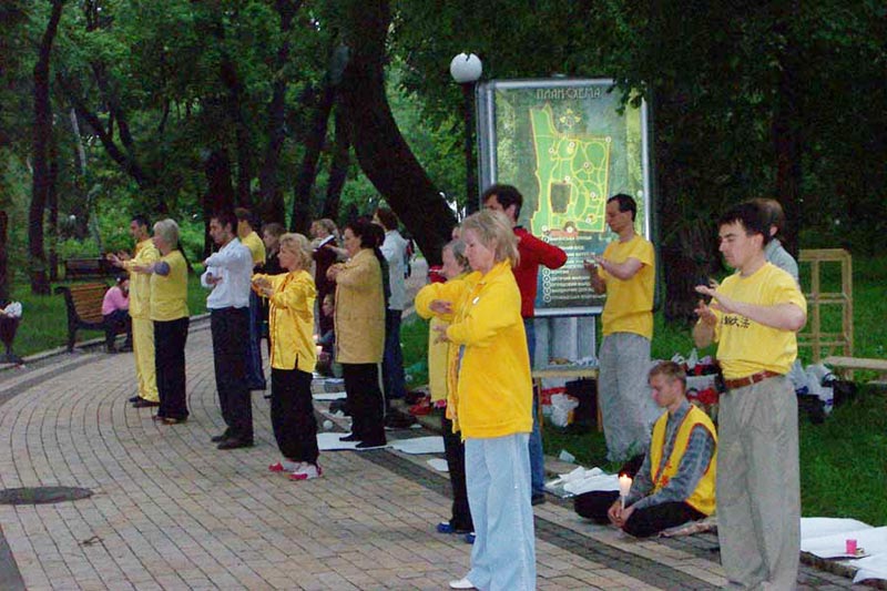 死的2000多名大法弟子,5月21日晚,在基辅市中心的中使馆前近百名来自乌克兰大法弟子和俄罗斯、波罗的海等海外弟子一起進行了烛光守夜活动。他们来到中使馆前抗议中共集团在中国大陆针对法轮功的迫害。