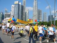今年“大竞走”的宣传词是“走向新生”(Get A New Life)。而法轮功修炼者的“新生”正是源于法轮功。在经历了沧桑困苦、上下求索之后,这一群修炼者向注视着他们的各界民众展示着法轮功的美好与“真善忍”的巨大感召力。“法轮功与你同行!”从容、自信、祥和,新加坡的大法弟子们在万里晴空下向前走去。