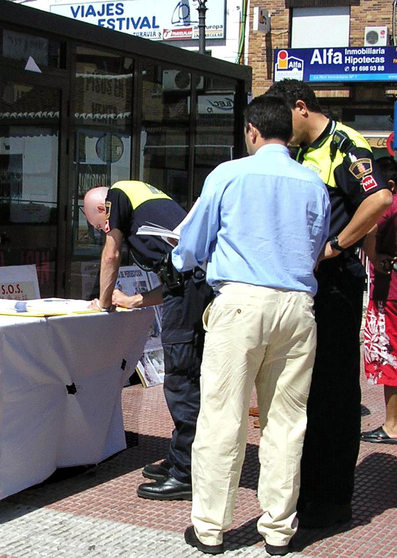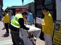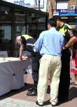 学员们在火车站入口处的空场上刚刚摆好图片,一辆巡逻警车就驶近停靠在路边,两位警察下车查问发生了什么事情。学员上前向警察讲述在中国发生的对法轮功的迫害并解释我们将在这里举办的活动。听了学员的讲述后,警察说:“21世纪决不应发生群体灭绝。你们可以继续你们的活动,虽然这样的活动一般来说是需要提前申请的,但你们的情况确实是特殊的。”