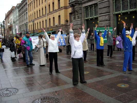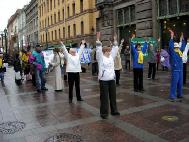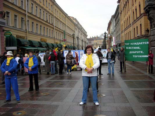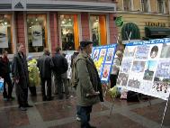 人们主动上前来询问法轮功的故事,并索取真象传单。