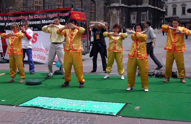 当日的天气很温暖,许多人前往维也纳市中心。学员们举办了六个小时的庆祝活动。由于法轮功在中国遭受迫害,奥地利学员们不仅表达了他们得法的喜悦,也通过反酷刑展揭露在中国的这场残酷的迫害,呼吁人们共同努力制止这种对人权的严重践踏。