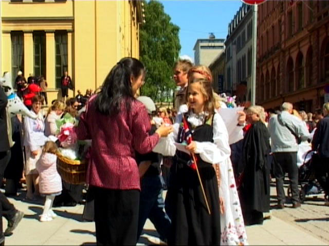 一位来自中国的女学生,当了解到分送莲花的人是挪威的法轮功学员时,她瞪大着眼睛,似乎不相信这是事实。她颇有敌意的对学员说:“法轮功在中国是禁止的。”一位女法轮功学员告诉这位女学生,她本人修炼法轮功已有六年,在全世界只有中国禁止人们修炼法轮功;就是在香港,人们都可以自由的修炼法轮功。学员的一身正气震撼了这个女孩,她一下子变得平和许多。
