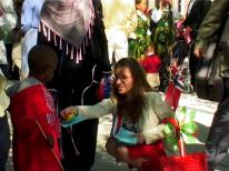 许多儿童以惊喜的表情接过莲花;有的还天真地问,是否可为自己的弟弟妹妹或小朋友拿一朵。不仅是儿童,许多老年人,青年人,不同肤色的人都希望能得到一朵莲花。人们认真的阅读祝愿卡,一位妇女说:“所有的人都需要真善忍。”