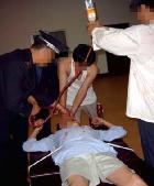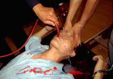 【明慧网2005年5月27日】曾在大庆看守所遭野蛮灌食大法弟子演示每天被四、五个恶徒按着