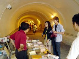 中山大学法轮大法社学员特别将难得一次的画展地点选在“西子湾隧道”内展出,别开生面的“隧道美展”在校园里面吸引了众多师生以及附近民众的注目。第一天在隧道内摆设画架时,即有不少的民众及师生围观,纷纷上前询问画展内容以及展出时间。