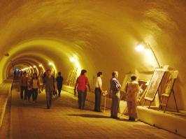 ![]() 全长两百六十五公尺的西子湾隧道里,参观学生以及民众纷纷上前询问 |