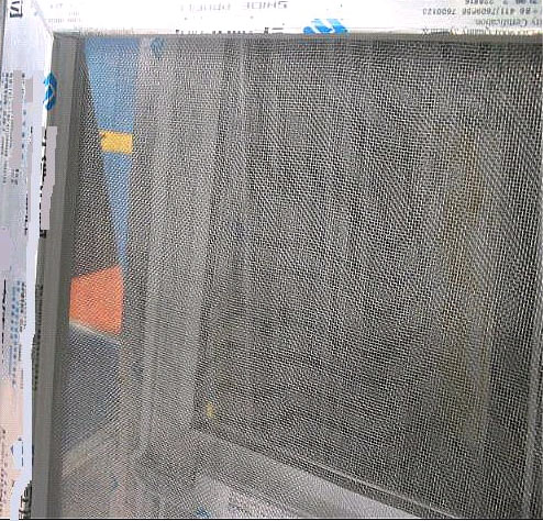 下图是铝合金框封制的金属丝网屏蔽窗、门、框,四周预留沟槽、孔,便于互相接地、和铰合。用于组装式电磁屏蔽室。