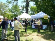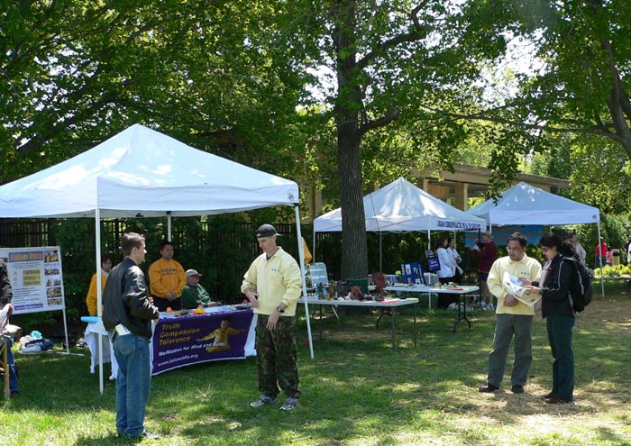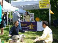 地球日活动设在周日,圣路易的法轮功学员们都是抽空轮流来向人们讲真象。越南裔的学员Kim和她的先生一下午都守在展位旁,“对法轮功感兴趣的人可真多,一下午都没停,一直在回答人们的询问。”他们高兴的说。
