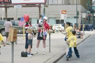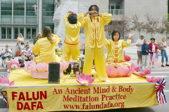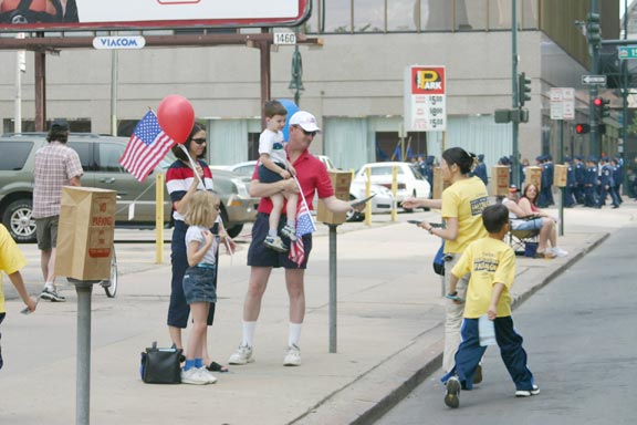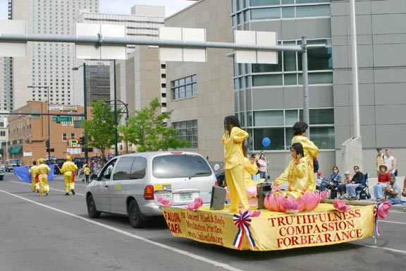 【明慧网2005年5月30日】2005年5月28日,美国科罗拉多州法轮功学员参加了丹佛市退伍军人节游行。学员们向市民演示了法轮功功法,中国传统唐鼓,并向行人发放真象资料。这是他们第四年参加此游行。