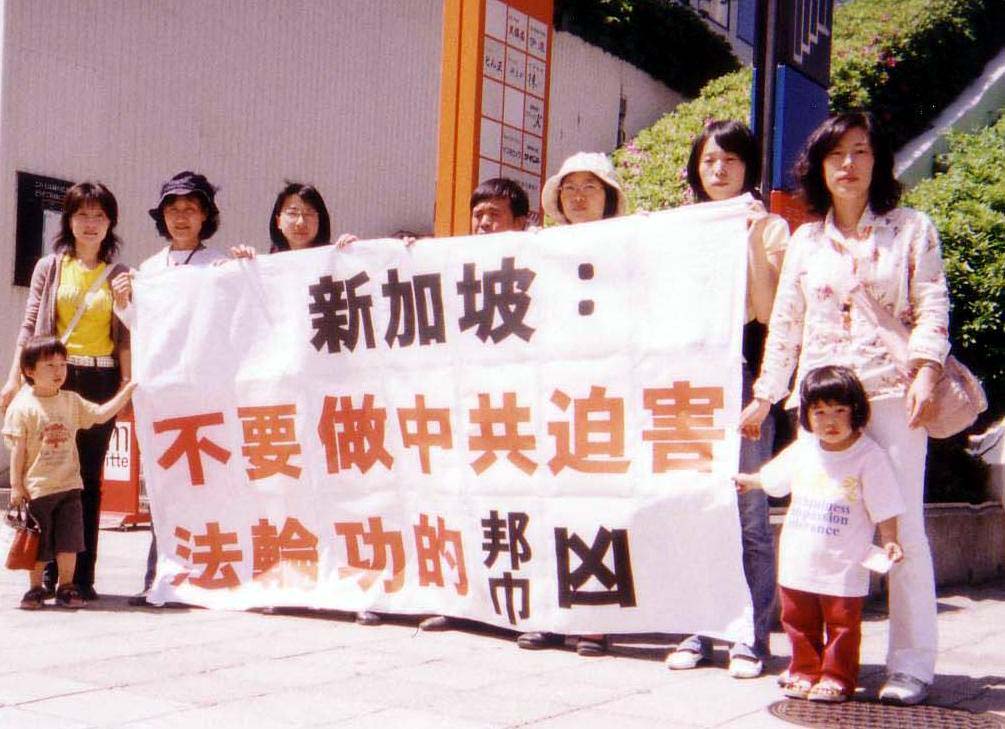 ![]() 法轮功学员在新加坡领事馆前请愿 |