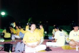 2000年12月31日晚6点左右,约60名法轮功学员,包括小孩和婴儿,象往常一样来到此地。他们静静的围成一个个小圆圈席地而坐,举行烛光悼念仪式,悼念在中国大陆因修炼法轮功被迫害致死的107名学员。参加的人中还包括几名有亲戚因炼法轮功在中国被非法关押的学员。几名学员手持两块板站在中间,板上列出107名被迫害致死的学员照片和名字。一块展板上写有“烛光守夜”,另一块展板写有“悼念同修”等字。选择该地方有几个原因。一是法轮功学员每周日下午在此炼功,以及经常在那里举行大型集体炼功活动。二是此地远离住宅区,非常安静。悼念活动不会对周围环境造成任何干扰。三是学员们也没有阻碍交通和行人通道。时间上也经过仔细考虑,确保天已经变黑,周围几乎没有游客。