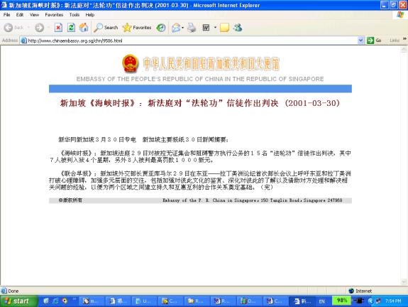 ![]() 这是中国驻新加坡大使馆网页上转载新华社文章 |