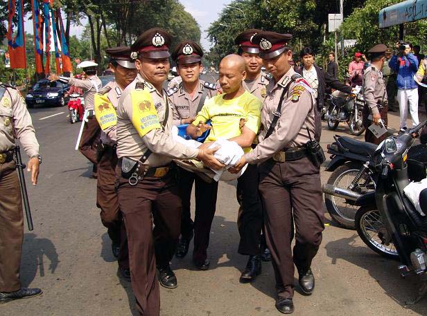警方这一反常态的举动,不但令法轮功学员,也让法律援助机构的律师卡托先生大感意外,他坦承包括他自己,很熟悉法轮功向来是以和平方式进行请愿示威。在初级法庭的辩证会上,卡托先生向法官提出辩证说,法轮功学员为声援停止对中国法轮功学员的残酷镇压而和平请愿,类似的揭露迫害行为是一种壮举,而印尼国家宪法保障每个公民有自由的言论权。