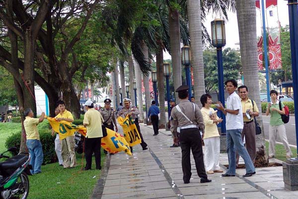 ![]() 印尼法轮功学员们在亚非峰会大厦附近和平请愿,呼吁:停止在中国迫害法轮功! |