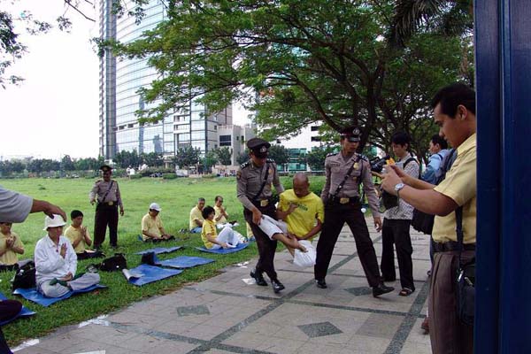![]() 学员被警察强行抬走 | ![]() 地痞混杂在群众中耍流氓肇事 | ![]() 地痞混杂在群众中耍流氓肇事 |
