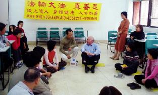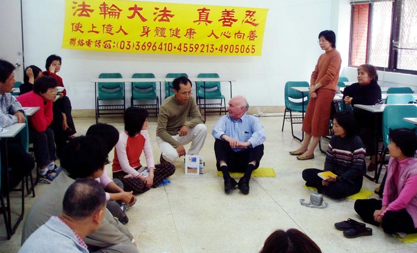 来自德国前欧洲雷达协会(EISCAT)主席Dr. Roettger,因教学研究的关系,曾于二年前来台湾短暂停留,那时他认识了刚得法没多久的社长,便跟着学炼了几套功法。当时他很爱听法轮大法的“普度”与“济世”这二首音乐,并说听那音乐能助他安睡。他很高兴能参与这个课程,自我介绍时说,上次回来台湾跟社长及其父亲学过几套功法,觉得很不错,希望这次来能够更新他的记忆,多学、多了解一些。