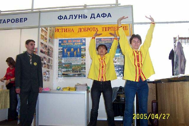 ![]() 法轮大法展位 | ![]() 索取真象资料和光盘 | ![]() 为观众演示5套功法 |