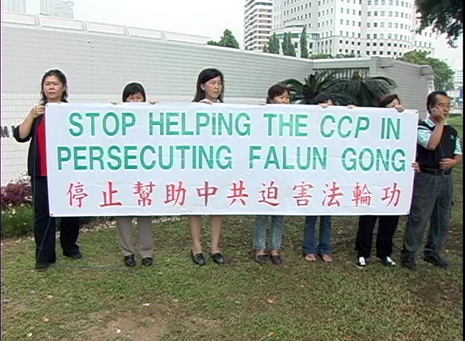 两名新加坡法轮功学员程吕金和黄才华女士因为在新加坡滨海公园炼功,并向民众介绍法轮功,讲述法轮功在中国大陆无辜遭受镇压的真象,以及分发真象小册子和VCD,而被新加坡警方控“未经申请非法集会”,并加控“拥有及邮寄未经批准的光盘”等罪。经近1年的审理,2005年4月27日,新加坡法庭判黄、程两人分别被罚款24,000新元和20,000新元。
