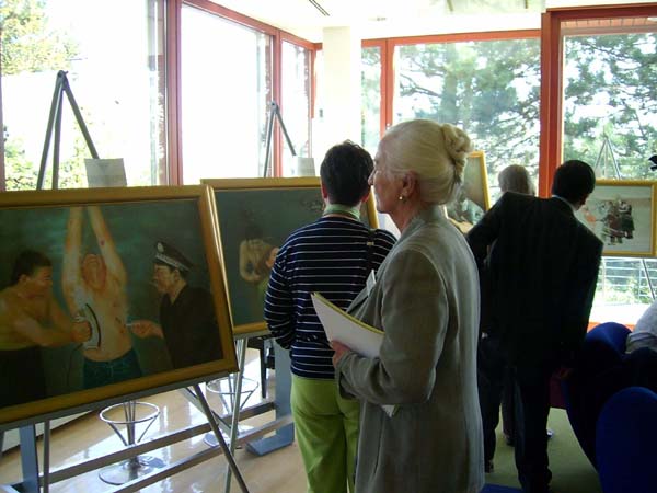 共产主义曾在东欧肆虐多年,来自这个地区的国际人权协会成员对这个画展更有感触。一个捷克人特别向弗尔克询问如何得到一张画的高清晰度照片,画上是一个老年的法轮功学员坐在一个笼子里,笼子矮得腰都伸不直。一些法轮功学员甚至被关在这样的笼子里长达几天。这个捷克人觉得这幅画很有象征意义,共产党就象这个笼子,它把一部份人杀死,另一部份人就被关在一个思想的笼子里。它要控制人的思想、自由,不让人有尊严的活着。日复一日,年复一年,在笼子里的人就忘记了什么是正常的生活,什么是人与生俱来的尊严和权利,他们日趋麻木,听命于对他们施酷刑的坏人。虽然他们还活着,但在精神上被虐杀。