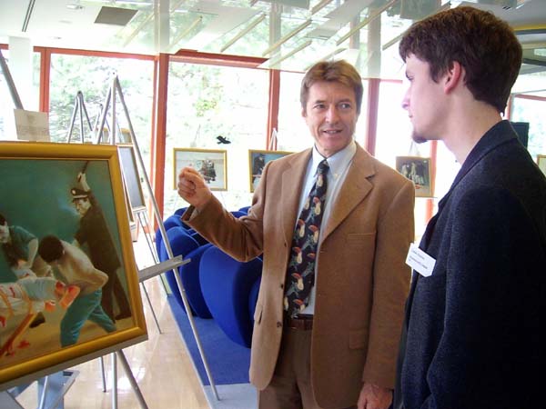 ![]() 这次画展的发起者弗尔克在给与会人员讲解。 |